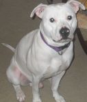 Snoop is the white one he is a year and five months old.. Jade is the Brindle and white one she is two and 9 months old... Then we have Big Mack he is from Snoop and Jade first litter he is only 13 weeks old he is huge.. I think he will be bigger than his mom and dad.....
